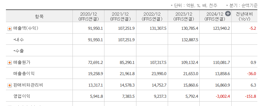 - 2024년 적자(영업이익 -3,849억, 순이익 -1.3조) → 2025년 영업이익 5,000~6,400억 원 전망