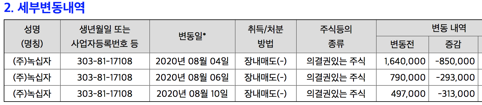 8/10 313,013주 (녹십자 313,000주)