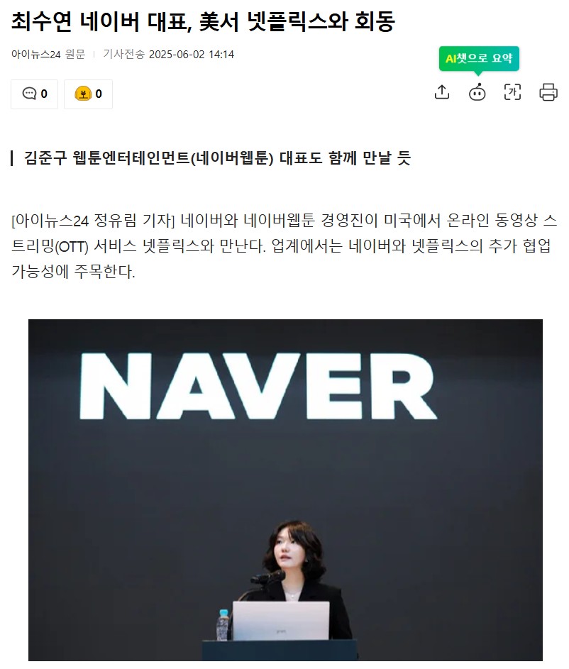 | 2025.06.05 | 네이버-넷플릭스 경영진 회동 (협업 확대 논의) |