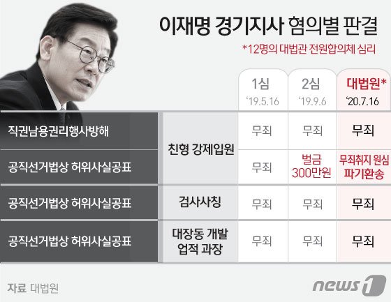 지난 2020년 7월 16일, 대법원에서 '허위사실 공표'건에 대한 무죄취지 파기환송을 하였고