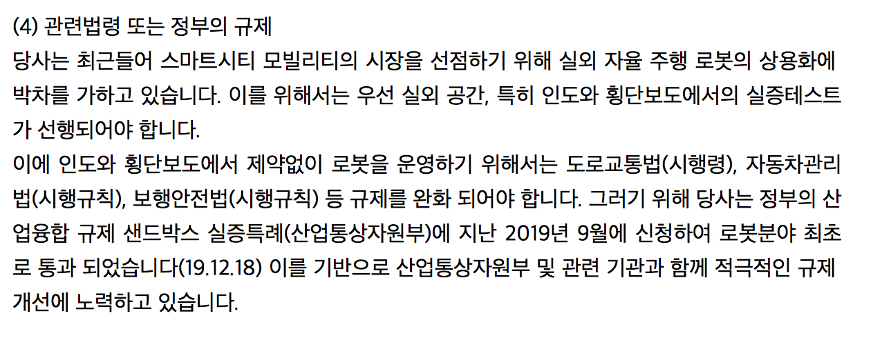 자율주행로봇 관련해서는 매출이 0인데.. 이제 규제완화로 매출이 찍히겠죠?