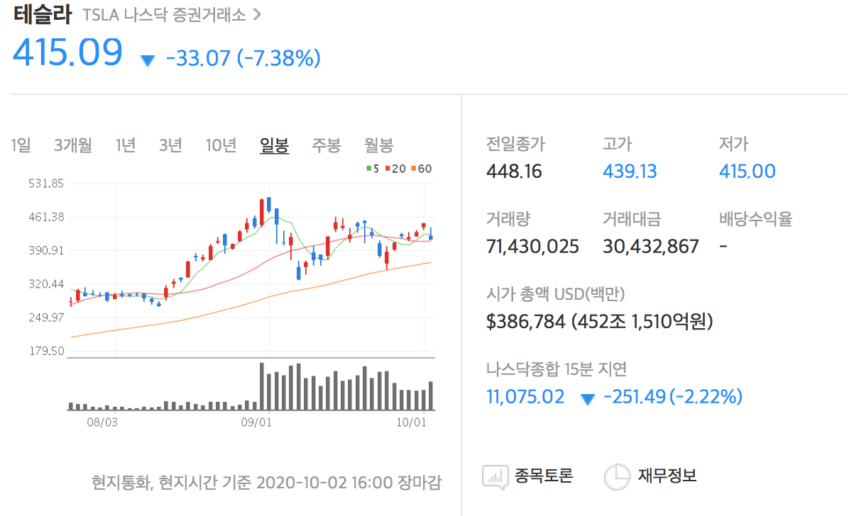 👆 테슬라의 3분기 인도량이 기대대비 소폭 상회했다는 기사가 있었으나, 오히려 테슬라는 그날 하락을 했습니다.