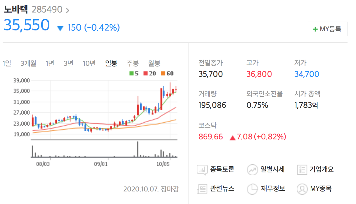 😅 노바텍의 딱 한가지 아쉬운점은 바로 최근에 많이 올랐다 입니다.