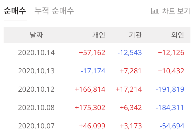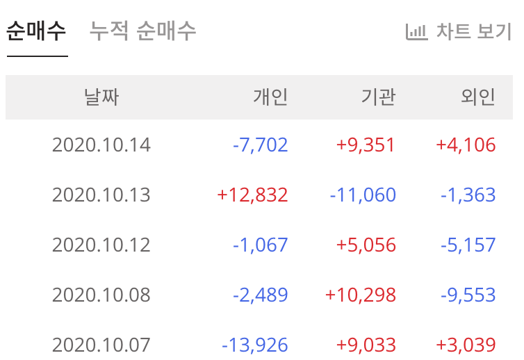 비교해보면 수급이 많이 약해짐을 볼 수 있는데, 오늘 양매수가 잡힌걸 확인할 수 있습니다. 😝
