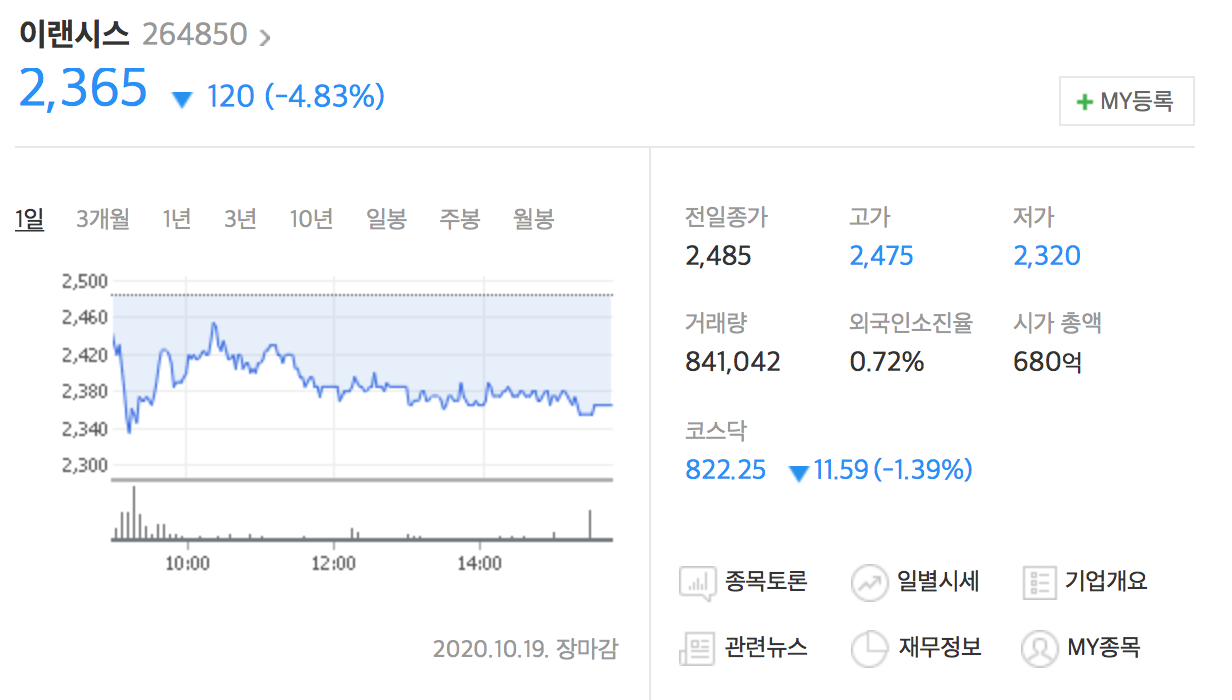 | [관심종목 A/S] 이랜시스 주가 전망 :: 계속 커버하고 있습니다. (0) | 2020.10.20 |