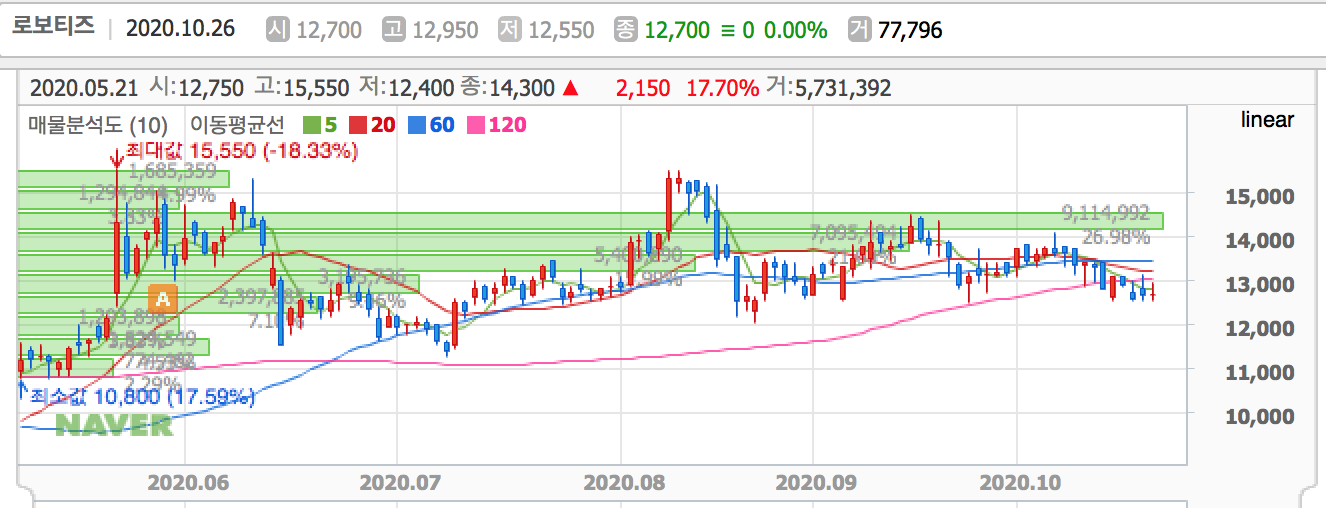 수요일에 있을 행사가 딱 로보티즈를 찍는 행사가 아닌이상 윗꼬리 가능성이 높습니다.