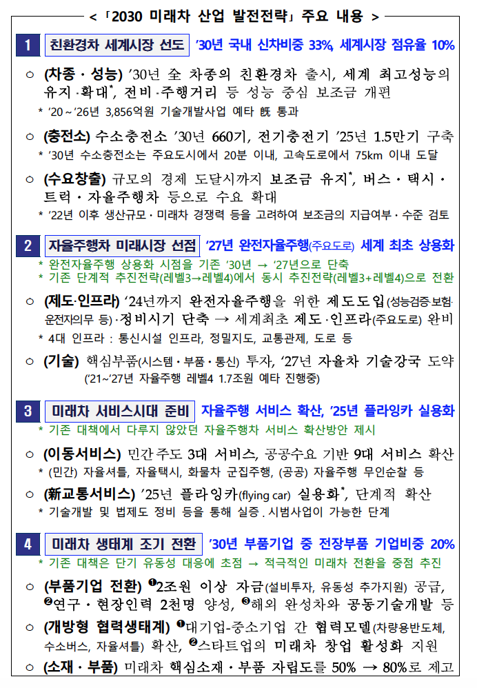 👆 2019년 10월에 발표한 2030 미래차 산업 발전전략의 주요내용입니다.