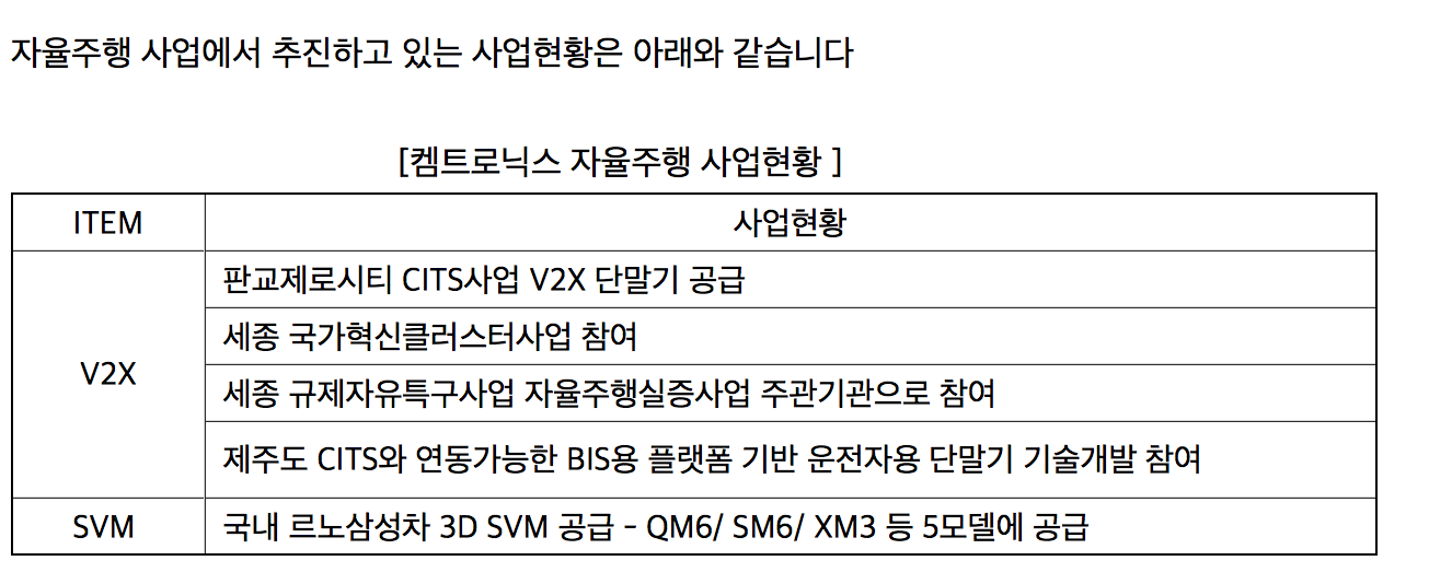 🔥 켐트로닉스는 폴더블 UTG와 자율주행과 관련되어 기술력이 입증된 회사입니다.