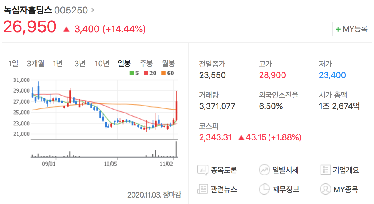 | [관심종목 리뷰] 녹십자홀딩스 상한가 :: 주가 전망 더 봐야하는 이유 (0) | 2020.11.04 |