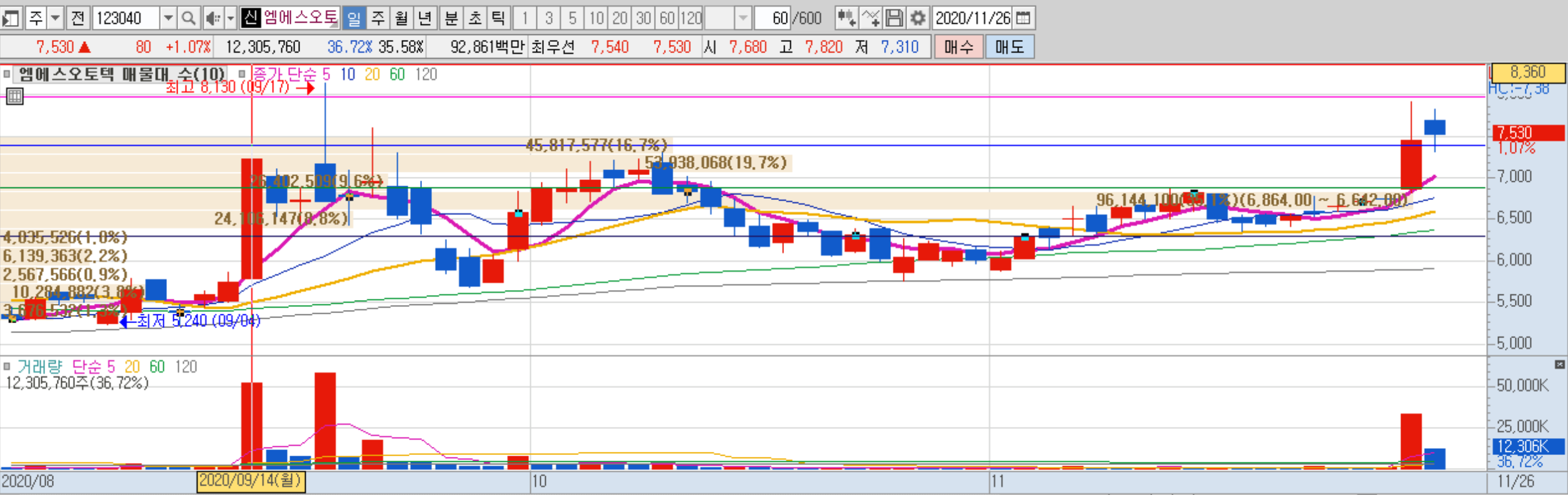 엠에스오토텍은 9월 14일, 9월22일 테슬라 배터리데이를 앞두고 관련주로서 시세를 받은 바 있습니다.