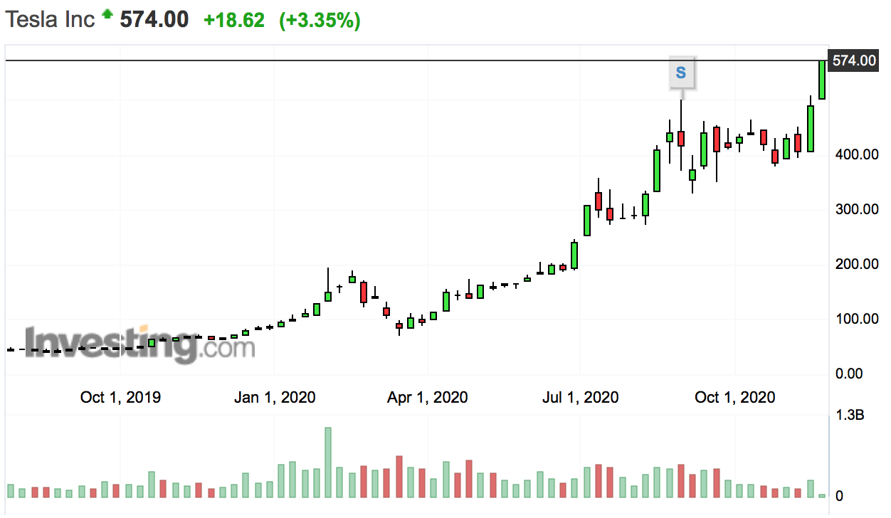 최근, 테슬라의 주가가 역사적 최고점에 달하고 있습니다.