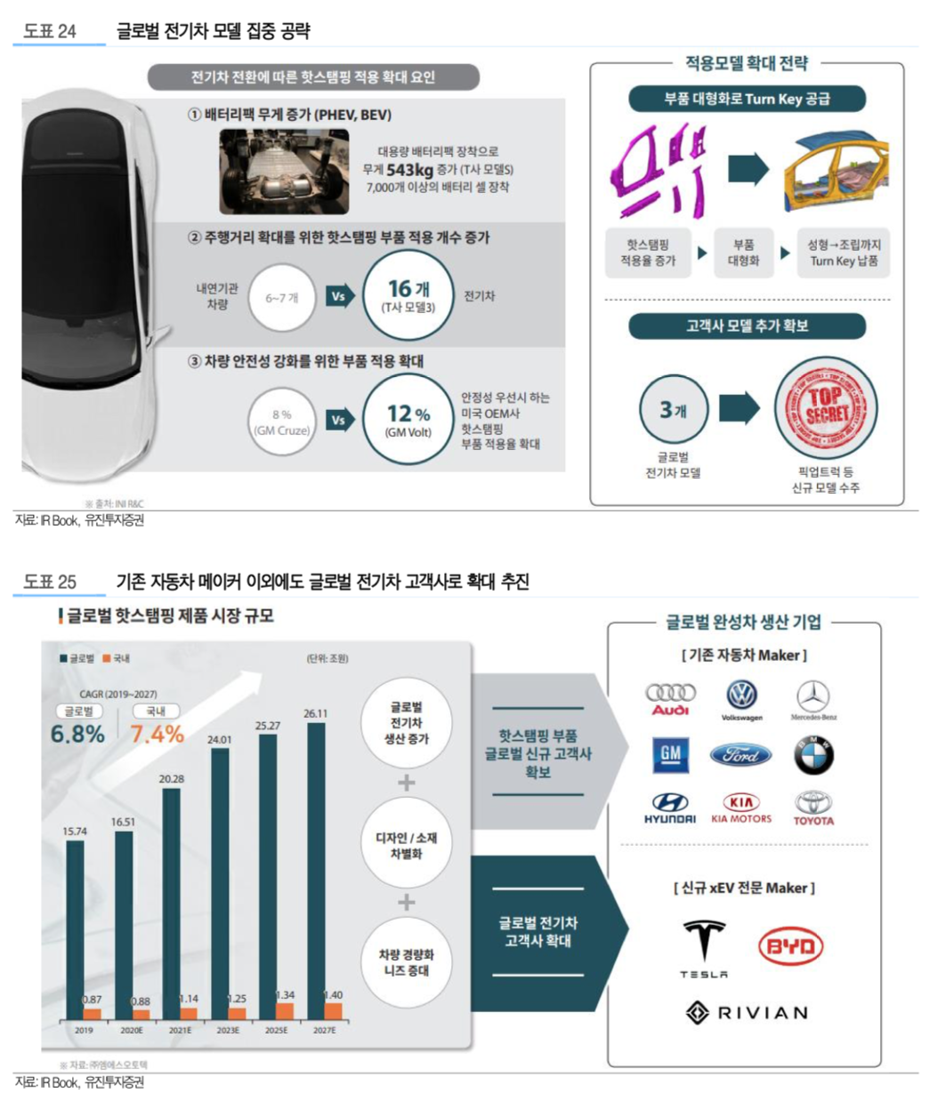현재 테슬라에 납품하고 있을 뿐만 아니라 상용차 부분에도 핫스템핑을 공급하고, 이에 따른 성장을 하겠다는 비전인데요