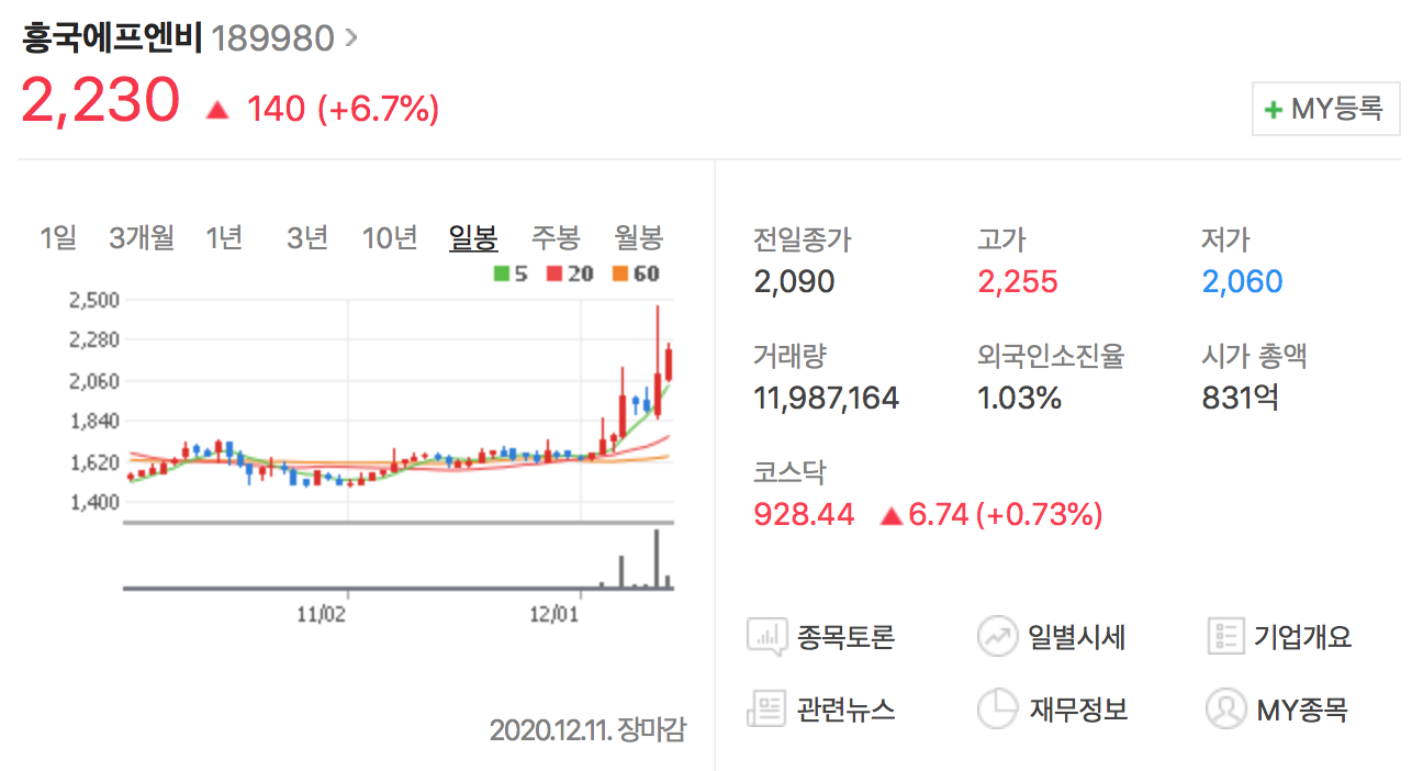사회적거리두기 3단계가 되면 가정에서 간편식을 지켜먹는 내식문화가 더 활성화 되겠죠? 간편식중에서 최근 좋은 시세를 내고 있는 종목으로는 흥국에프엔비가 있습니다.