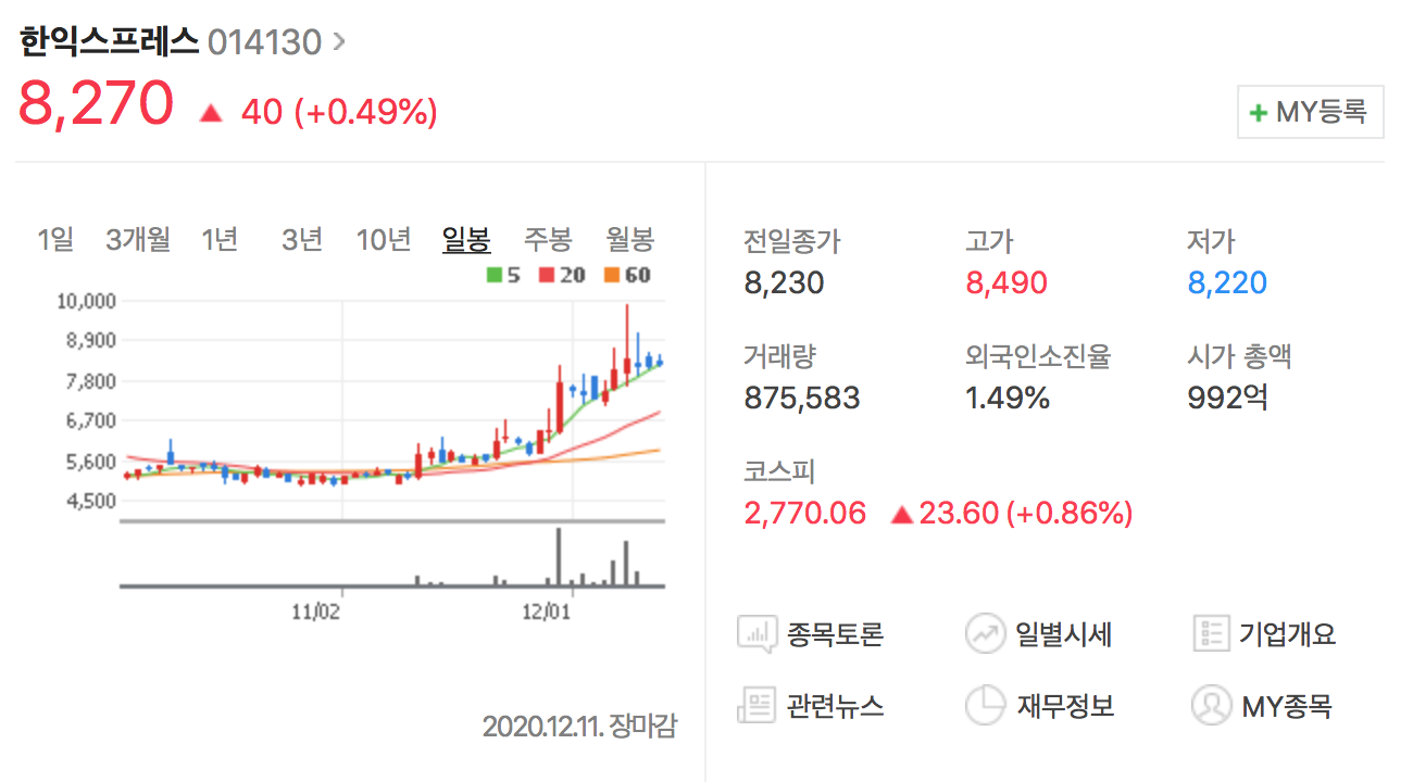 한익스프레스가 시세를 받을 확률이 높습니다.