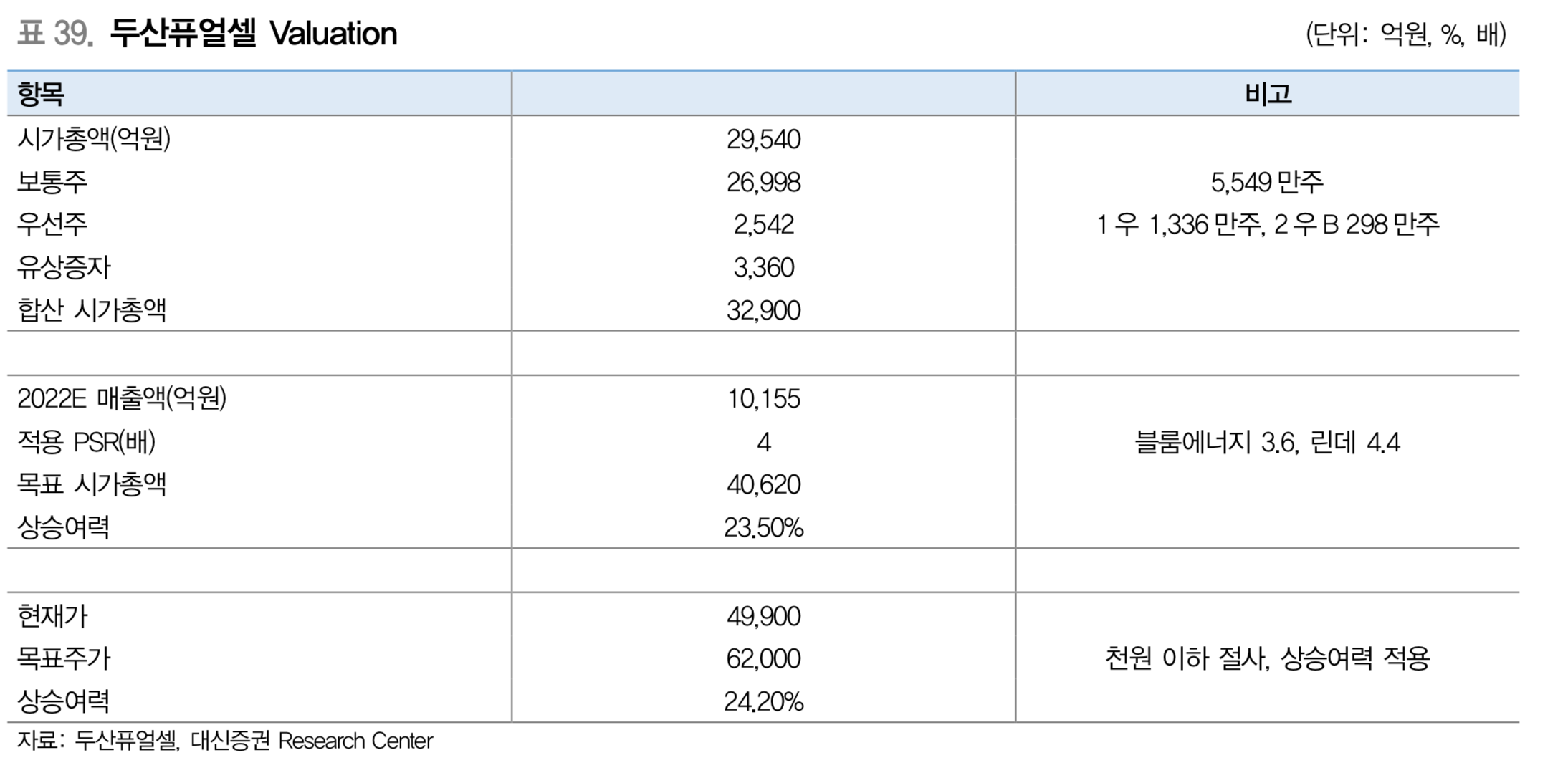 대신증권에서 12월에 발간한 자료입니다. 글로벌 수소기업의 PSR을 가지고 와서짠 수치입니다.