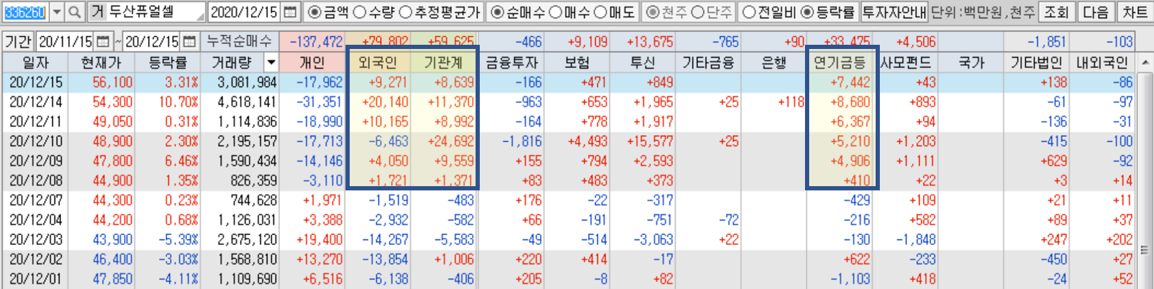 12월 8일부터 외국인과 기관, 특히 연기금의 매수세가 집중적으로 보이고 있습니다. 수급 베리베리 굳!
