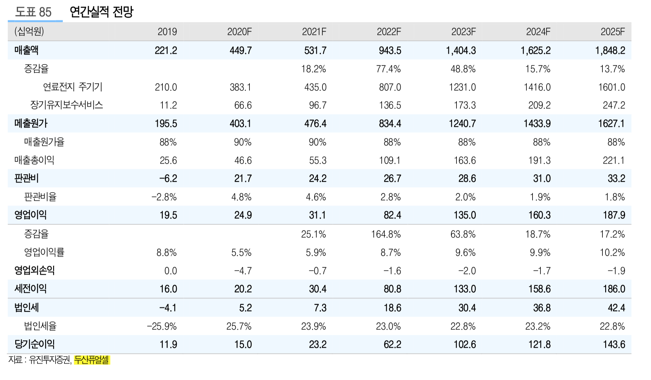 비슷한 시기, 유진투자증권에서 나온 리포트를 보면 조금더 공격적으로 매출을 예측했습니다.