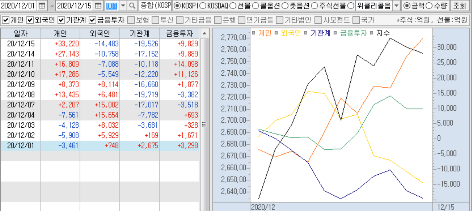 최근 장세를 보면 외국인/기관의 매도, 개인의 매수가 하나의 방향성이 된 가운데