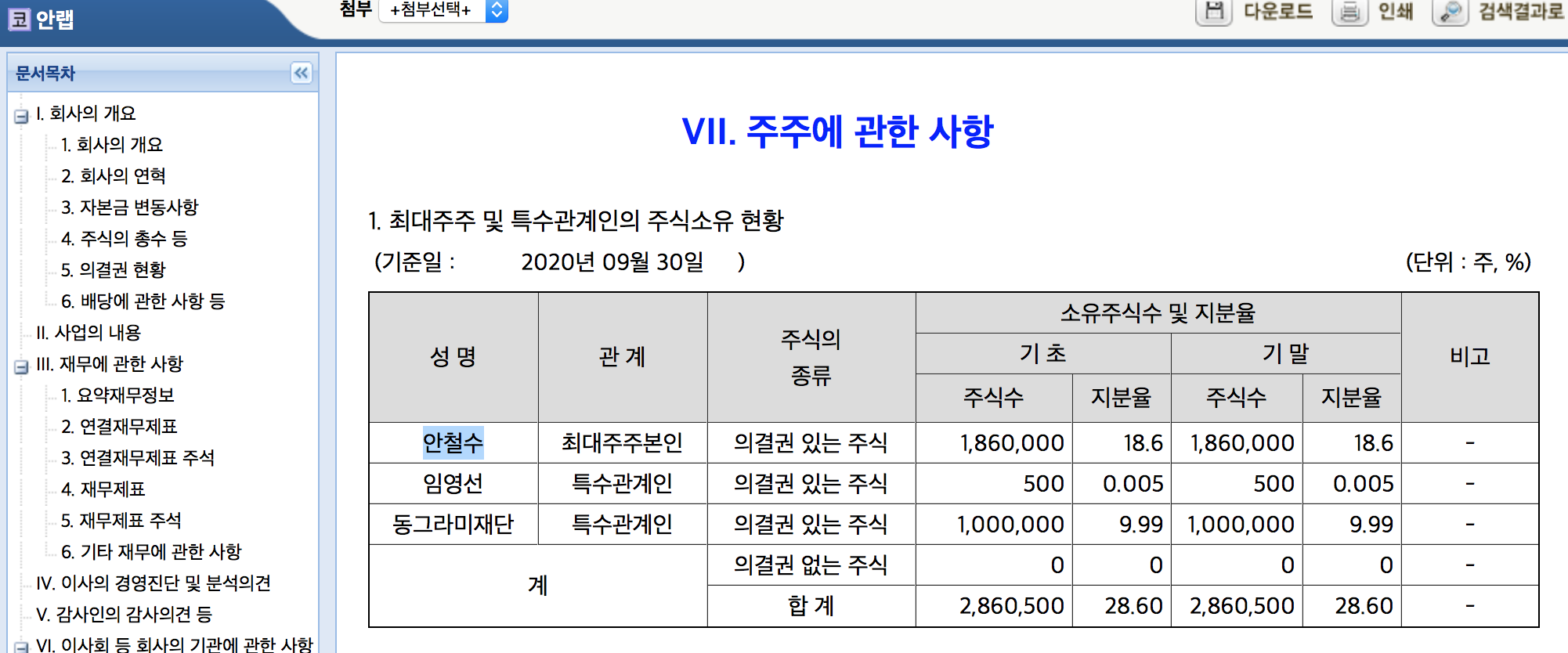 최대주주가 안철수 그 자체이기때문에 당연히..