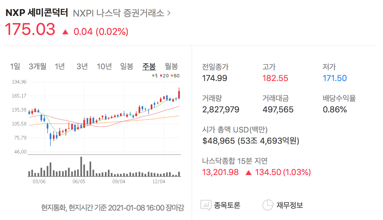 👆 차량용 반도체 전세계 1위는 미국 NXP 세미콘덕터입니다.