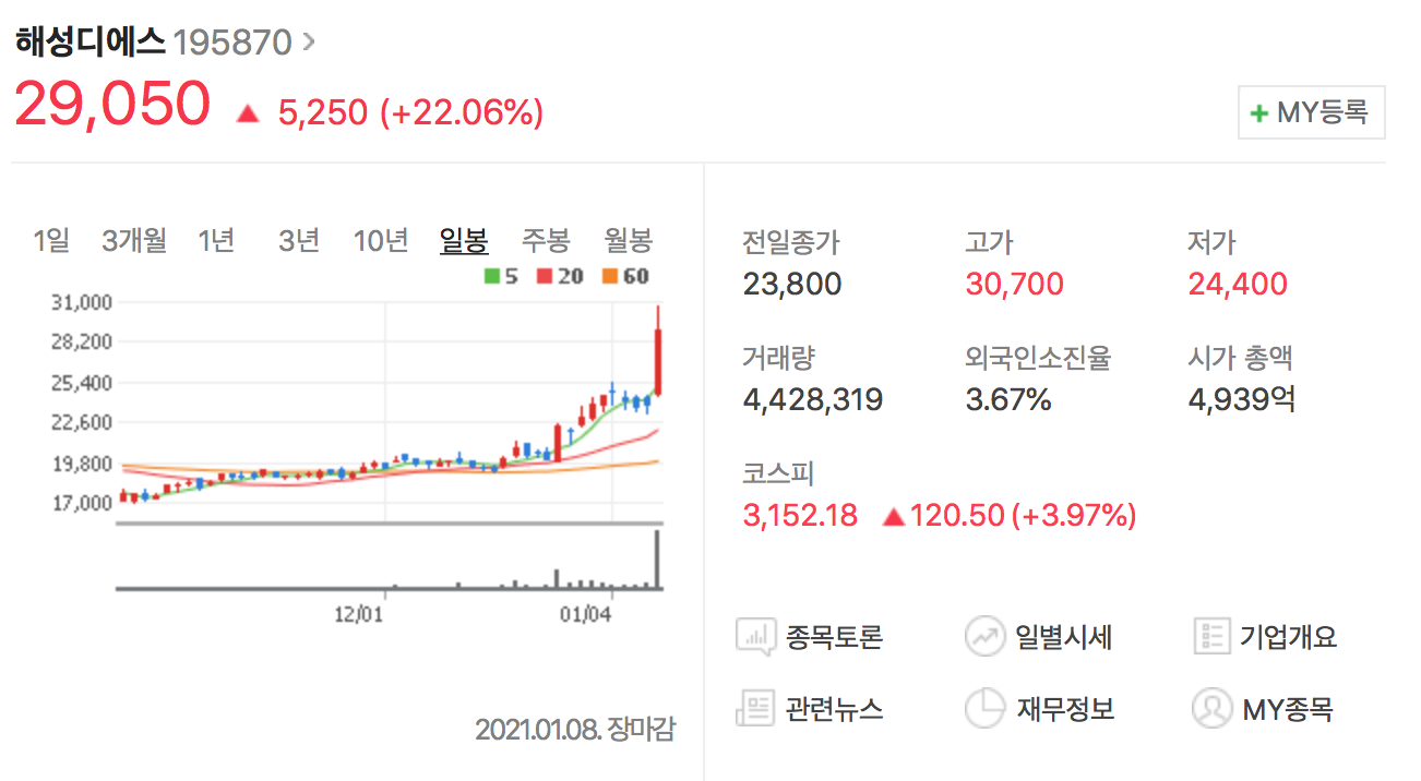 1월 8일 금요일 장전 동시호가 전에 나온 애플카-현대차 공동개발 뉴스로 인해서 수급이 전체적으로 급하게 전장/자동차 부품 관련주로 쏠렸습니다. 이를통해 코스피 3100이라는 지수 신고가를 기록했으나 한 섹터에 급등주 수급이 쏠리면서 어쩔 수 없이 바이오등 다른 섹터의 종목은 크게 재미를 못본 날이기도 합니다.