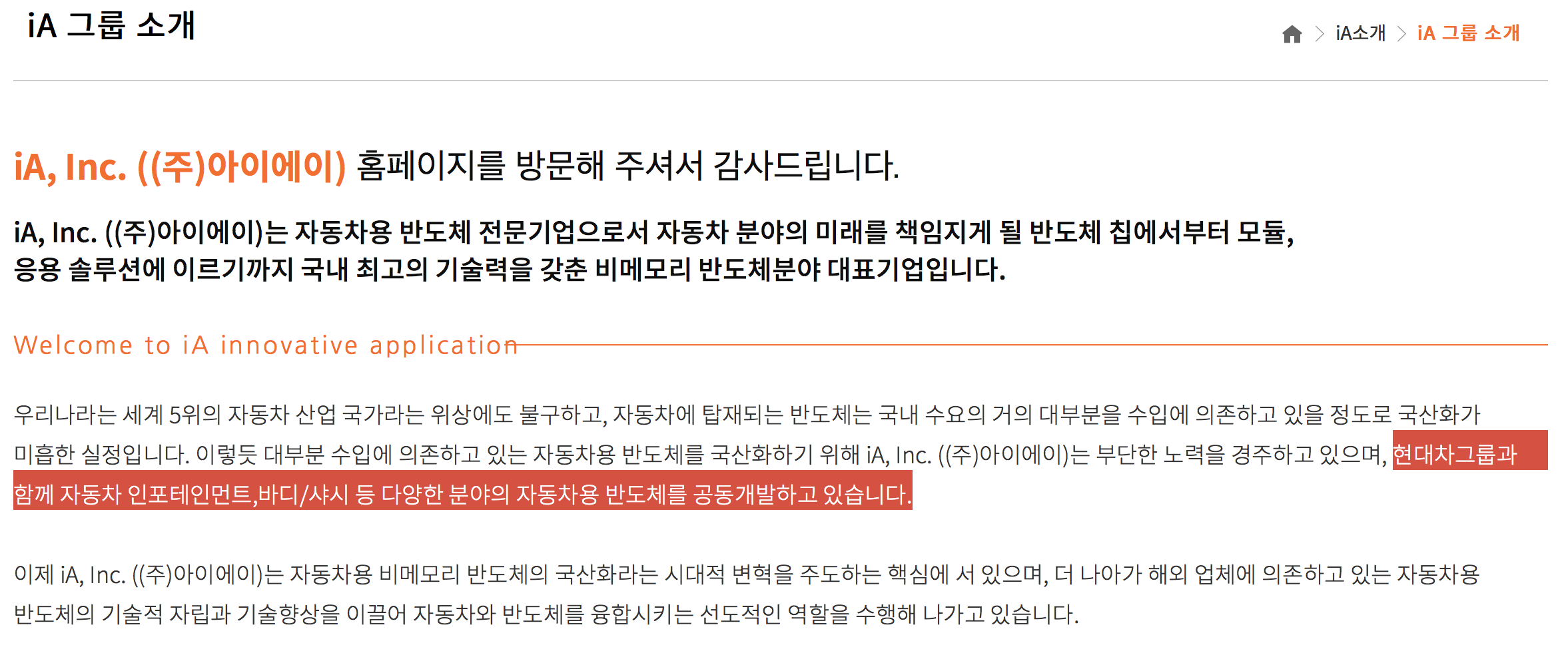 2. 아이에이 :: 현대자동차에 시스템반도체를 납품 / 공동연구를 하고 있는 자동차 반도체 회사