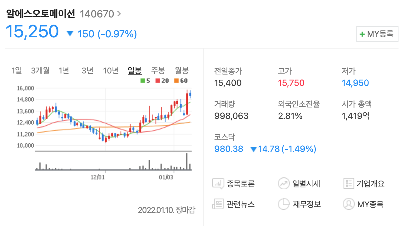 알에스오토메이션 종목 분석